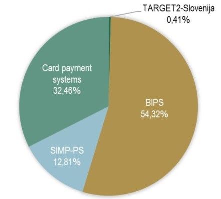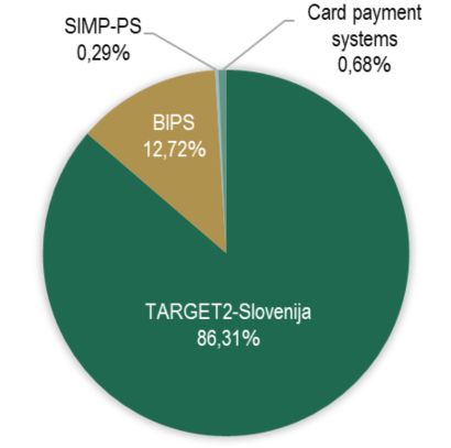 Credit transfers settled in the BIPS accounted for approximately half of the total number of payments, the highest share of Slovenia’s payment systems. The BIPS accounted for an insignificant share of instant payments in 2020 (well below 1%).