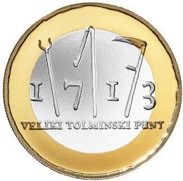 V Banki Slovenije smo pripravili dvokovinski zbirateljski kovanec za 3 € (visoki sijaj oziroma proof), izdan ob 300. obletnici velikega tolminskega punta v količini: