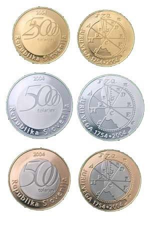 To mark the 250th anniversary of Jurij Vega’s birth, the Republic of Slovenia is issuing three commemorative coins featuring a combination of an image of a drawing from Vega’s essay on the shape of the rotating earth (an axial section of a rotating sphere) and a profile of Vega taken from a bust made by sculptor Ivan Zajc in 1903.