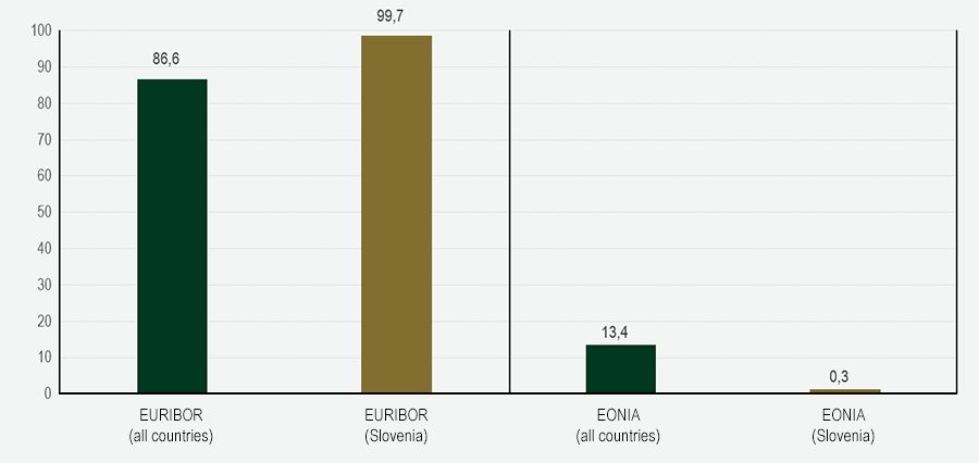 A change will be made to interbank overnight interest rates on 2 October 2019: the current EONIA will be replaced by the Euro Short-Term Rate or €STR. The ECB will publish the €STR every trading day by 9 am CET. The EONIA will remain in use until the end of 2021, but in the interim (i.e. from 2 October 2019) it will be calculated as the €STR plus a fixed spread of 8.5 basis points. The Bank of Slovenia finds that the proportion of contracts in Slovenia tied to the EONIA is very low in value terms. The majority of financial instruments are tied to the EURIBOR, where the reforms are not yet finalised.