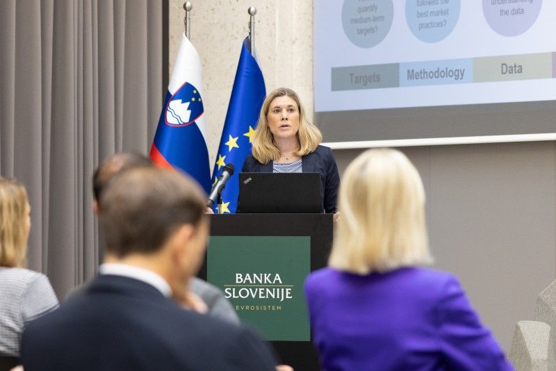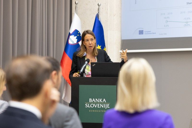 The keynote speakers were Debora Revoltella, chief economist at the EIB, who presented the EIB’s latest research on investment for Slovenia with a focus on climate change, and Katja Koren, Director of Banking Operations at Banka Slovenije, who presented how Banka Slovenije incorporated sustainability-linked considerations in the investment framework of its own financial assets.