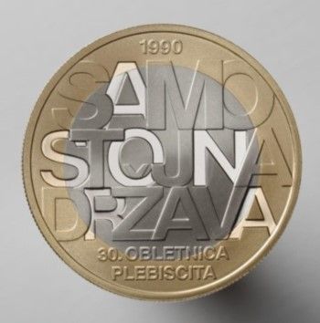 The main motif of the collector coins marking the 30th anniversary of the referendum on Slovenia’s independence is a play on the numbers of the referendum date on one side and the inscription ‘Independent State’ (Samostojna država) on the other. The letters and digits are at different levels. The artist behind the work is Tevž Zrinski. The following quantities of collector coins will be available: