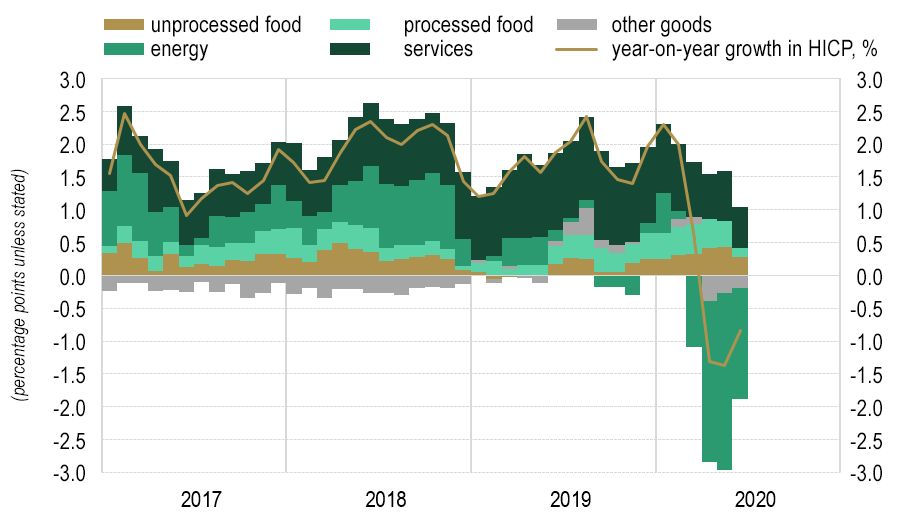 Core inflation, i.e. inflation excluding energy and food prices, also remained low in June: it was below 1% for the third consecutive month. It has been driven sharply downwards since the outbreak of the epidemic by the year-on-year fall in prices of non-energy industrial goods. After an initial run-down of inventories, the fall in prices of non-energy industrial goods has declined slightly. Service price inflation slowed again slightly in June, to 1.7%. The figure is already a more reliable reflection of the situation in the market: since the lifting of containment measures, the conditions for collecting prices have normalised, with the exception of passenger air transport and certain package holidays. While the measures were in place, the temporary ban on the direct sale of goods and services meant that it was impossible to collect prices for the majority of services.