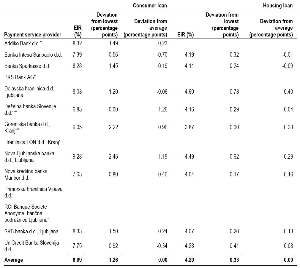 In the comparison of advertised effective interest rates (EIRs) across individual banks and savings banks, we also find the differences between the banks’ offers to be relatively large. The gap between the highest and lowest EIRs on the average consumer loan is 2.45 percentage points, while the gap on the average housing loan is 0.73 percentage points.