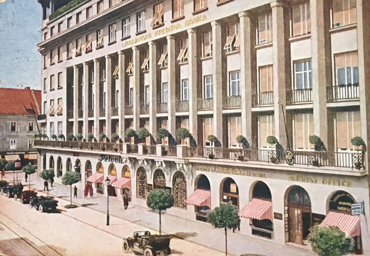 Ljubljanska kreditna banka (LKB) built its five-storey offices between 1920 and 1923, on what is now the corner of Slovenska and Cankarjeva. Given LKB’s close links at that time with Živnostenská banka in Prague, the bank building was designed by František Krásný, a Czech architect.