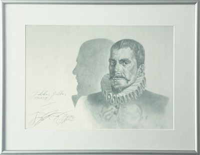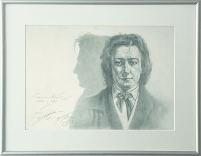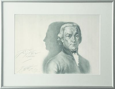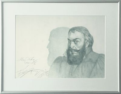Portraits of famous Slovenians from tolar banknotes: France Prešeren, Jože Plečnik, Jurij Vega, Jakob Petelin Gallus, Primož Trubar, Janez Vajkard Valvasor, Rihard Jakopič, Ivana Kobilca, Ivan Cankar