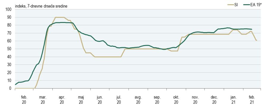 Slika 1: Strogost ukrepov za preprečevanje širjenja Covid-19