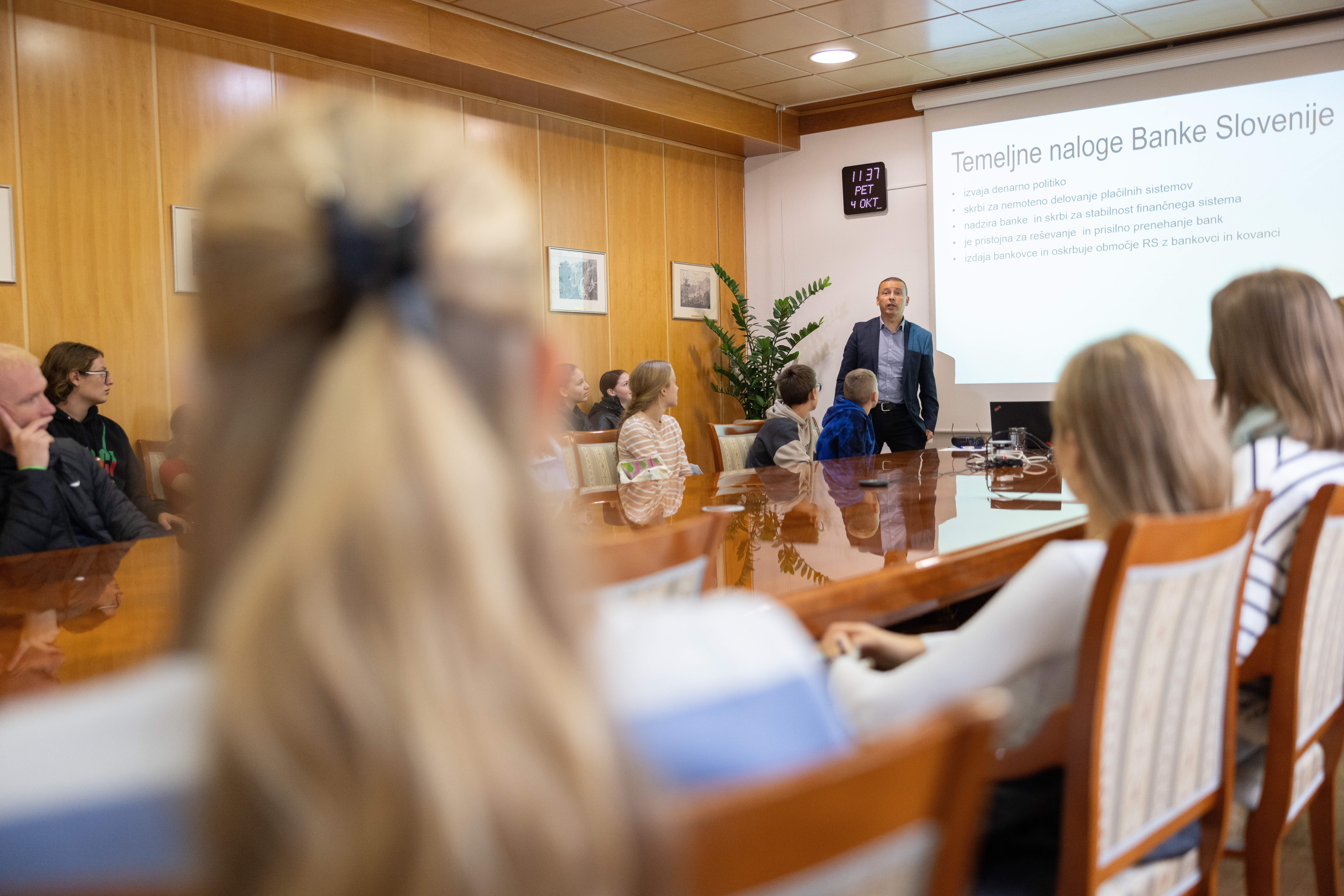 V Banki Sloveniji smo v sodelovanju z Ministrstvom za finance RS organizirali dan odprtih vrat in s tem uradno v letošnjem šolskem letu pričeli s projekti v okviru finančnega opismenjevanja. V uvodnem delu sta okoli 400 udeleženih otrok nagovorila namestnik guvernerja Primož Dolenc in minister za finance Klemen Boštjančič. Oba sta poudarila pomen tovrstnih projektov in mlade opozorila na prednosti in pasti v sodobnem digitalnem svetu.