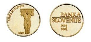 Na sprednji strani medalje je stilizirana upodobitev enega od štirih kipov – atlantov s pročelja zgradbe Banke Slovenije. Atletska figura atlanta simbolizira trdnost, moč in stabilnost in je povezana s tolarjem. Levo zgoraj je napis »Banka Slovenije«, ob spodnjem robu pa je letnica izdaje »2001«. Na hrbtni strani medalje je znak Banke Slovenije ter letnici »1991« (uvedba denarne enote) in »2001« (leto izdaje medalje). Letnici imata skupno enico, ki simbolizira to obdobje.