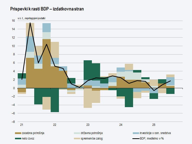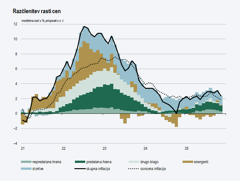 Pregled makroekonomskih gibanj z napovedmi, december 2025