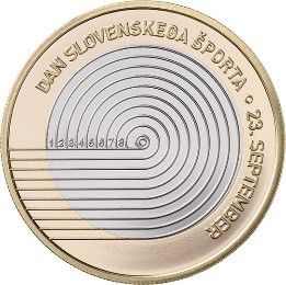 Slika 2: Obe strani dvokovinskega zbirateljskega kovanca ob državnem prazniku dan slovenskega športa