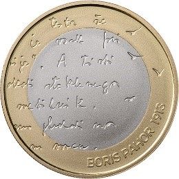 Slika 1: Obe strani dvokovinskega zbirateljskega kovanca ob 110. obletnici rojstva slovenskega pisatelja Borisa Pahorja