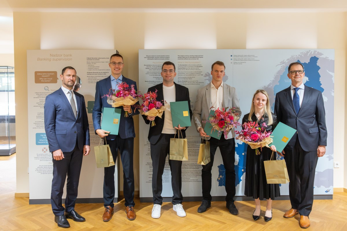 V Banki Slovenije smo tudi letos podelili nagrade prof. dr. Ivana Ribnikarja – nagrade za najboljša zaključna dela študentov s finančnega področja. Izbirna komisija, ki jo je vodil viceguverner Marko Pahor, je izmed devetih prijavljenih del izbrala štiri najboljša magistrska dela.