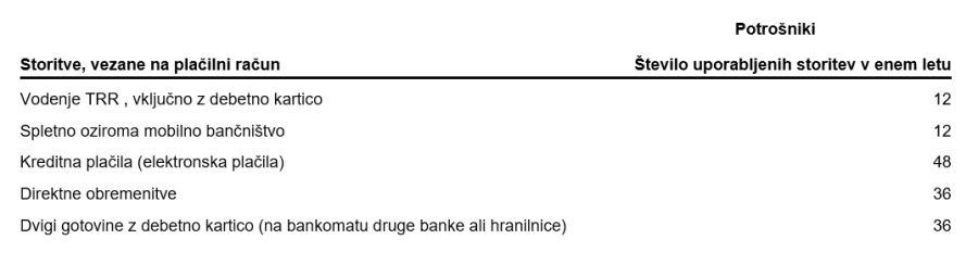 Da bi zagotovili enostavno primerljivost ponudbe bank in hranilnic, izračuni temeljijo na isti košarici plačilnih storitev. Vsebino košarice smo pripravili v sodelovanju z bankami in hranilnicami in odraža plačilne navade tipičnega komitenta. Pri tem posamezni paketi lahko vključujejo tudi širši nabor storitev, vendar tega in kvalitativnih razlik v ponudbi (npr. široka mreža lastnih bankomatov) v enostavni primerjavi, ki jo zagotavlja košarica storitev, ni mogoče upoštevati.