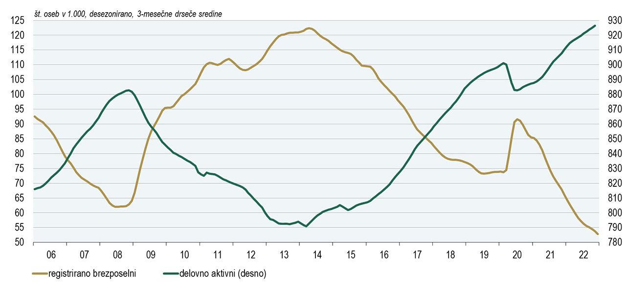 Zadnji podatek: registrirano brezposelni – december 2022, delovno aktivni – november 2022.
