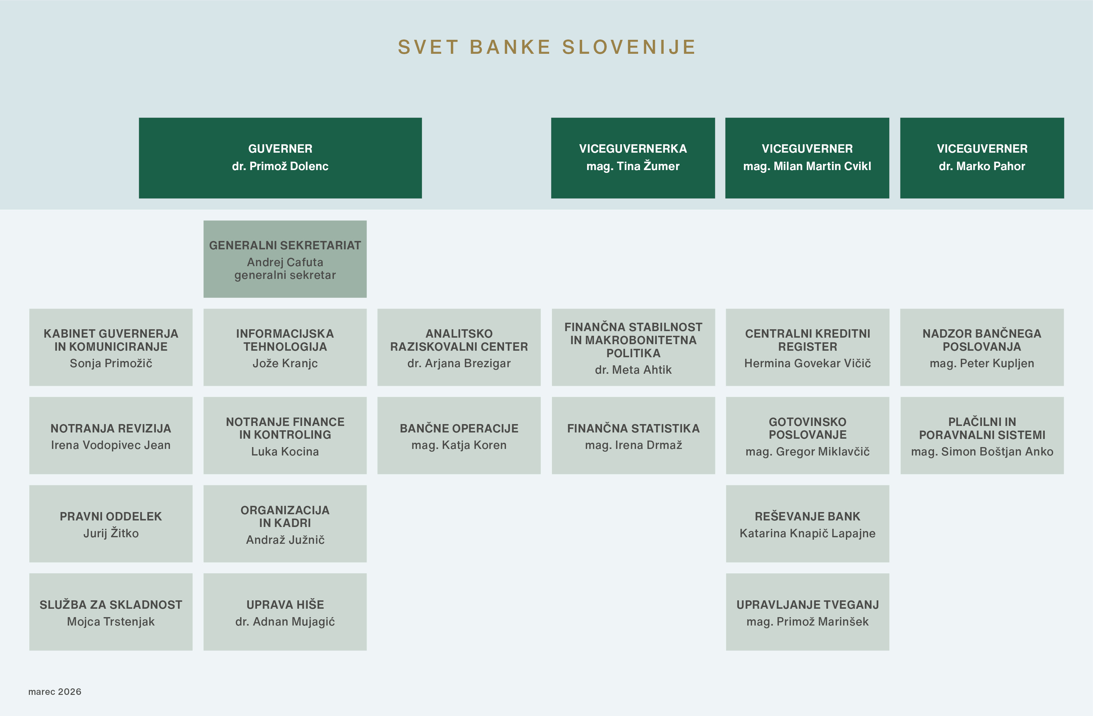 Organa Banke Slovenije sta guverner Banke Slovenije in Svet Banke Slovenije.