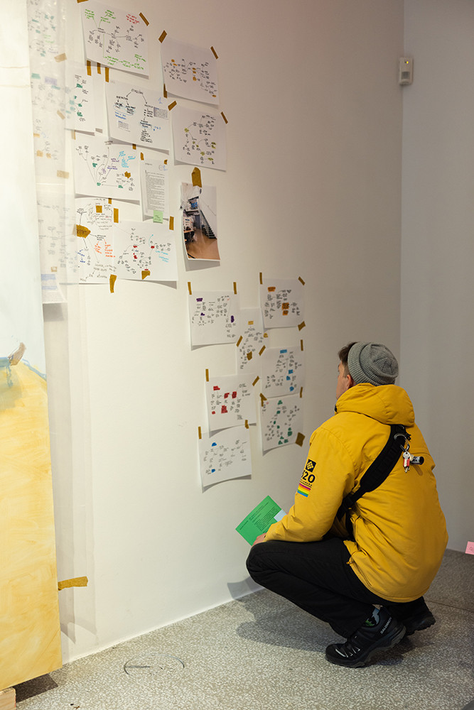Procesualna razstava Nine to Five je vmesni korak v širšem projektu Kolektiv Arhiv, ki se tokrat poglablja v odtujeno, a hkrati prepoznavno vizualno in prostorsko manifestacijo sistema materialne in energetske proizvodnje. Člani kolektiva so se zadnje mesece gibali po obronkih slovenske industrijske infrastrukture, od energetskih in logističnih vozlišč do območij težke proizvodnje. Na terenu so sklepali vezi, bili večkrat prezrti ali prijazno zavrnjeni, tuintam pa presenetljivo toplo sprejeti in so lahko zašli za pročelje industrije. Zdaj bodo svoje izkušnje postopoma zgoščevali v pripoved; med razstavnim tednom bodo zdržema ustvarjali v razstavnem prostoru, od odprtja do zaprtja galerije.