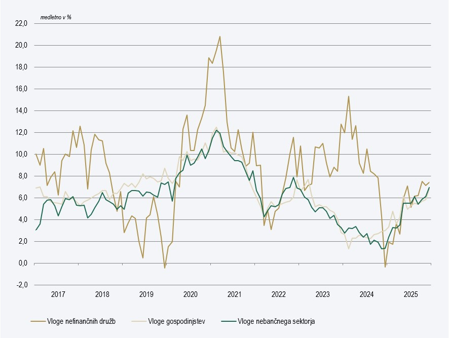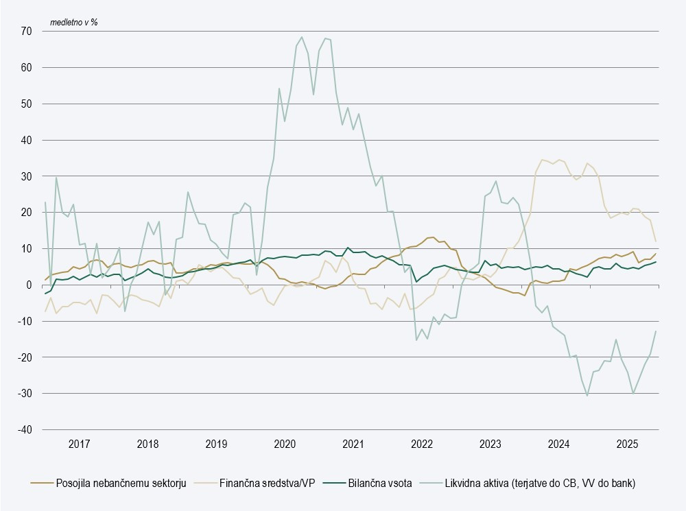 Slovenski bančni sistem v letošnjem letu kljub številnim negotovostim nadaljuje z uspešnim poslovanjem. Večjih sprememb v poslovanju bančnega sistema tako ne zaznavamo: še naprej se močno krepijo vloge nebančnega sektorja, predvsem gospodinjstev, zaradi negotovih razmer pa se je povečal tudi obseg vlog nefinančnih družb. Banke še naprej kreditirajo predvsem gospodinjstva, kjer se je povečal tako obseg stanovanjskih kot potrošniških posojil, a so se v zadnjih mesecih okrepila tudi posojila nefinančnim družbam iz nekaterih dejavnosti.